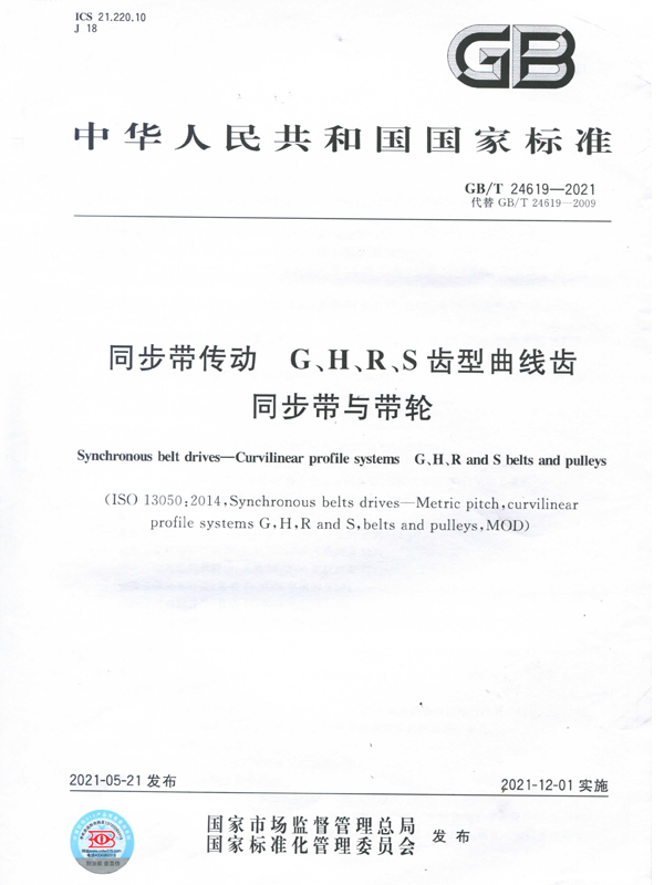 由寧波伏龍同步帶有限公司為主修訂的GB/T28775-2021(代替GB/T28775-2012)《同步帶傳動(dòng) T型梯形齒同步帶輪》、GB/T24619-2021(代替GB/T24619-2009)《...